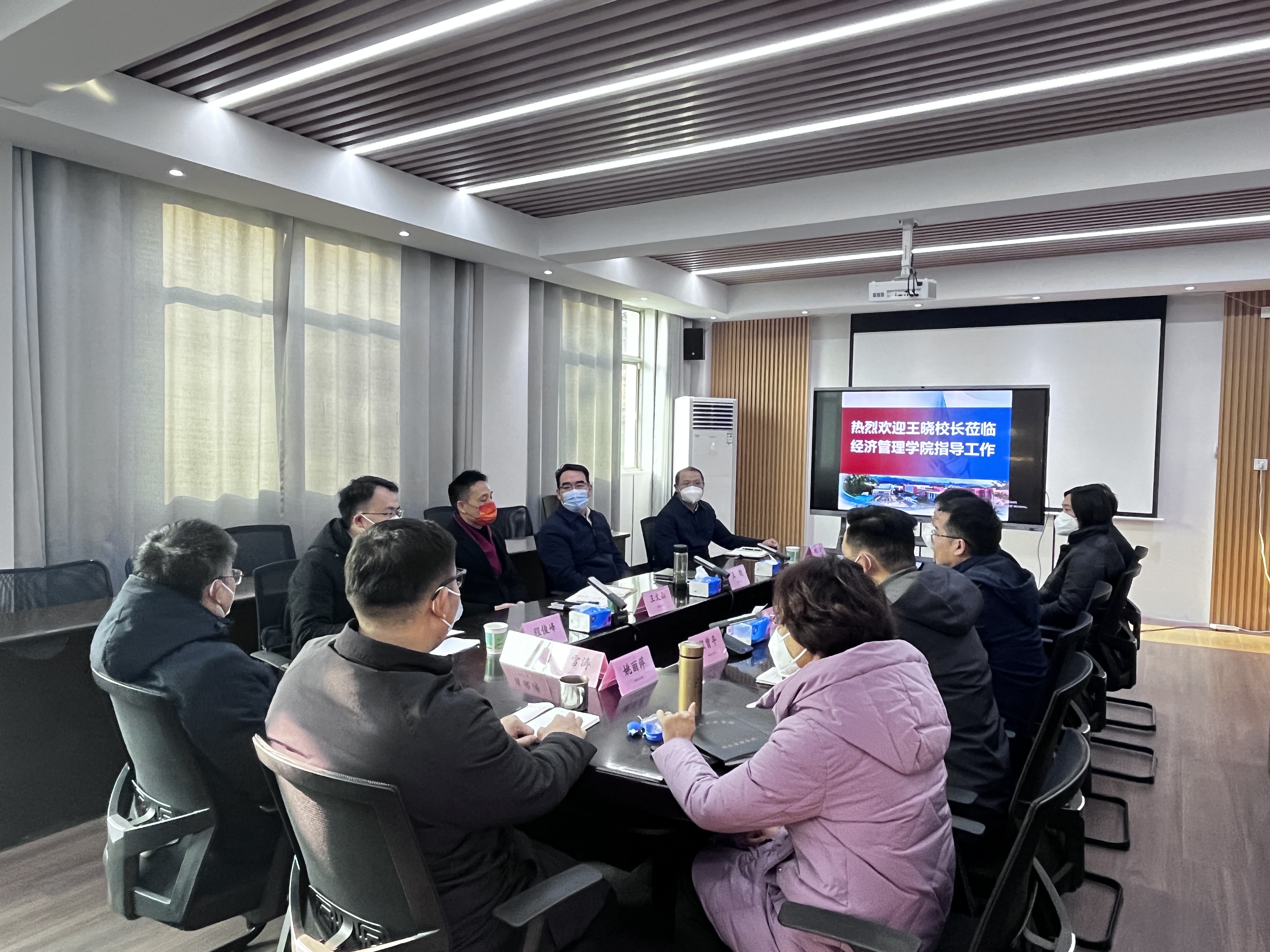 12月30日下午,董事长王晓一行到经济管理公司调研指导工作,公司党委常委、校办主任、经济管理公司分党委书记王文山,公司全体班子成员,教授代表,系、科室主任等参加了调研座谈。座谈会由经理钱洁主持。