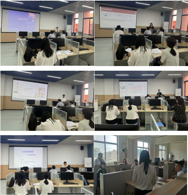 会上,财务管理专业卢东阳、李亮、刘嘉倩三位老师分别就《税务理论与实务》《高级财务管理》《成本会计》三门课程、物流管理专业陈彦交、夏美君、黄子豪三位老师分别就《企业经营战略》《组织行为学》《仓储运输管理》三门课程的教学目标、教学方法、重难点、教学计划等向与会老师进行了介绍,并就备课过程中遇到的疑点难点、教学方式方法选择、学习通使用方法等问题与各位老师进行交流。