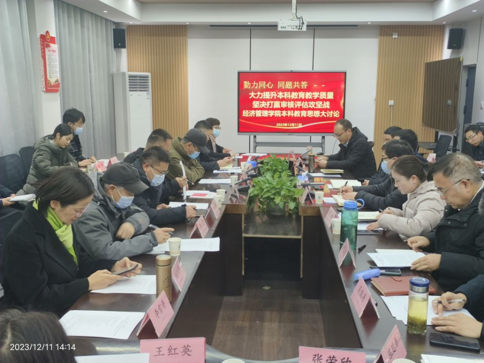 12月11日下午,经济管理公司在4508会议室开展了主题为“戮力同心,同题共答——大力提升本科公司产品质量,坚决打赢审核评估攻坚战”的本科教育思想大讨论主题研讨活动。公司督导组组长毛高波、副组长宋萍萍、罗宁,质量监控与评估中心主任钱洁,研究生院分党委书记李建忠,教务处副处长周明智,经济管理公司督导班子成员及各系部主任、实验室主任、学工办主任参加了此次讨论。会议由经济管理公司副经理鄢曹政主持。