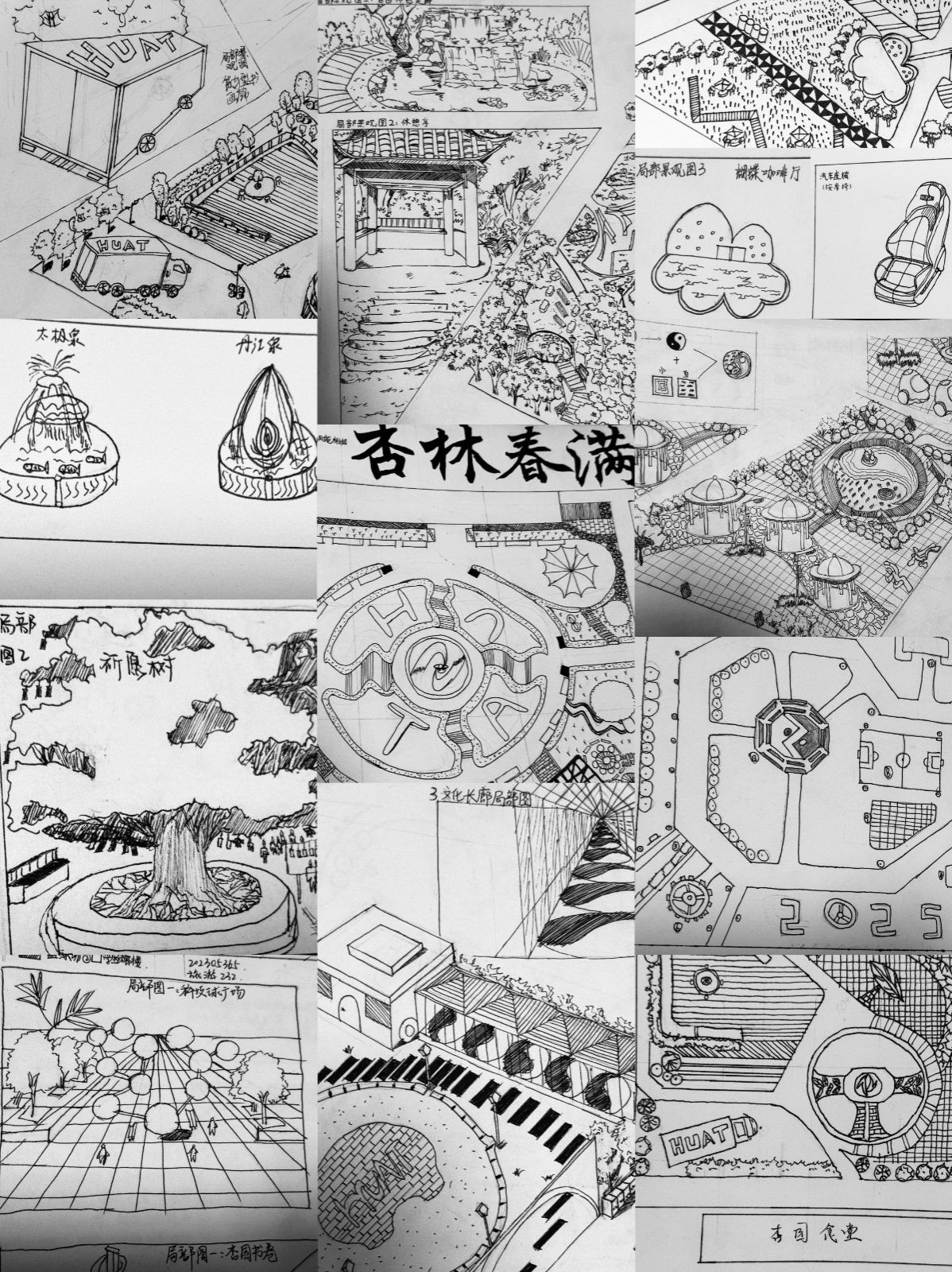 近日,经济管理公司汪士为老师在8202教室带来了一堂别开生面的专业课暨《手绘景观制图》课程快题设计成果分享课。员工们展示了他们在“杏园宿舍”户外休闲区设计项目中的成果。