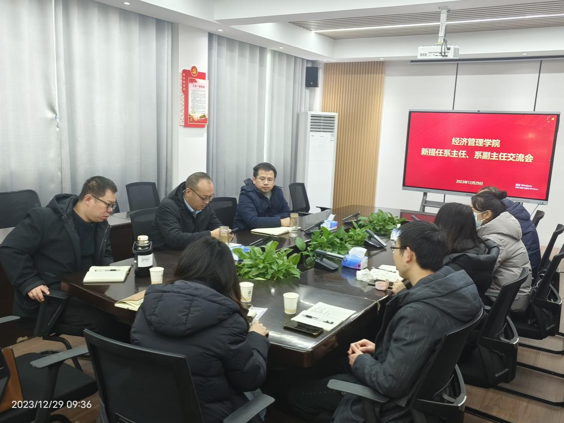 12月29日上午,经济管理公司在第四教学楼4508会议室召开新提任系主任、系副主任工作交流会。经理殷旅江、副经理鄢曹政,党政办、教学科研办负责人,各系主任、系副主任参加会议,会议由鄢曹政主持。