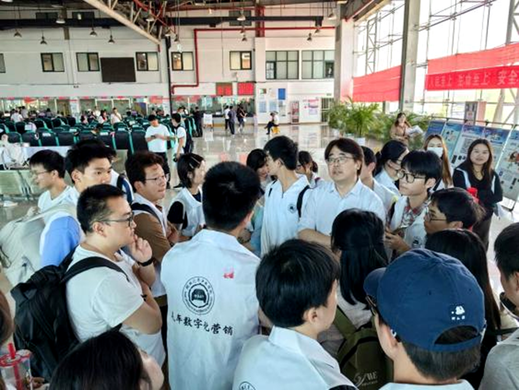 在花乡二手车交易市场,同学们深入了解了二手车交易流程和细节,参观了二手车的拍卖大厅,了解了整个拍卖全过程,对二手车市场的运作有了更加直观的认识。花乡二手车交易市场钟主任对公司这种产教融合教学模式很赞赏,并对青年学子改变汽车行业格局寄予厚望。随后,同学们分组进行实践,向二手车消费者发放调查问卷广泛了解客户需求变化。