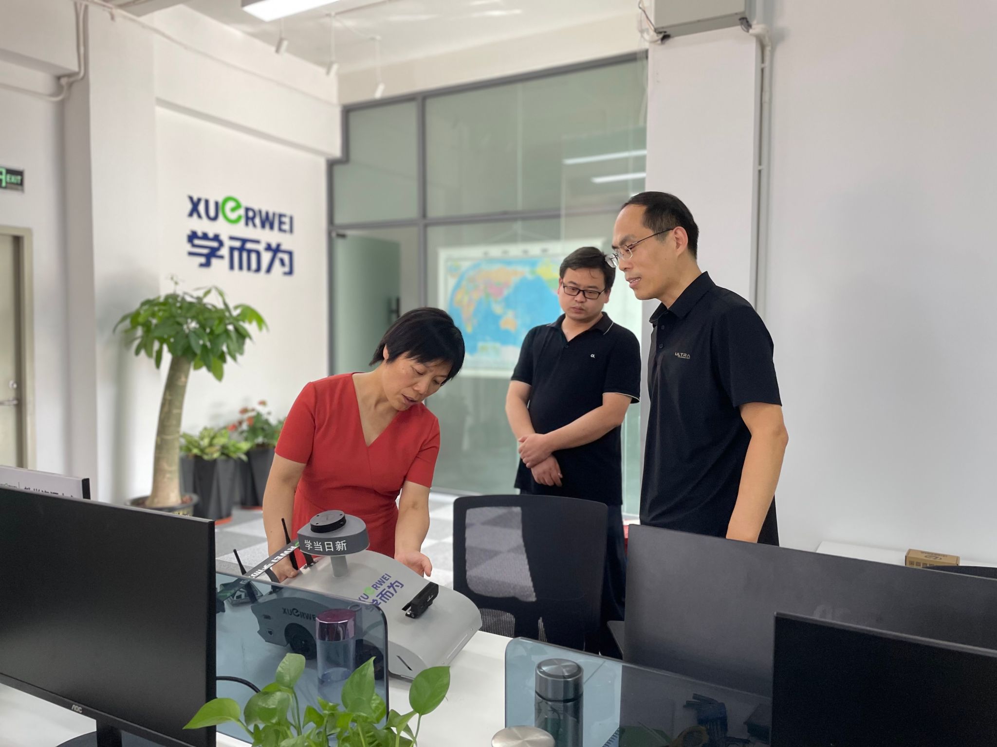 8月11日上午,张红霞与华为技术有限公司矿山军团江西福建区域总经理徐琨(8913班)、华为海思事业部员工张雪峰(T123-4班)进行亲切交流,深入探讨了校企合作的切入点和可行性路径。11日下午,张红霞一行在比亚迪第十五事业部研发科长钱科伟(T583-5班)的陪同下,考察调研员工企业学而为智能汽车(深圳)有限公司,学而为公司副总经理房德将(T583-5班)带领参观了实训教学设备生产车间,汇报了公司的产品情况和当前面临的发展瓶颈。张红霞高度肯定了员工的创业精神,针对企业发展难题提出了针对性解决方案,并表示利用公司的科技资源服务员工企业,构建互利共赢的校企合作机制。