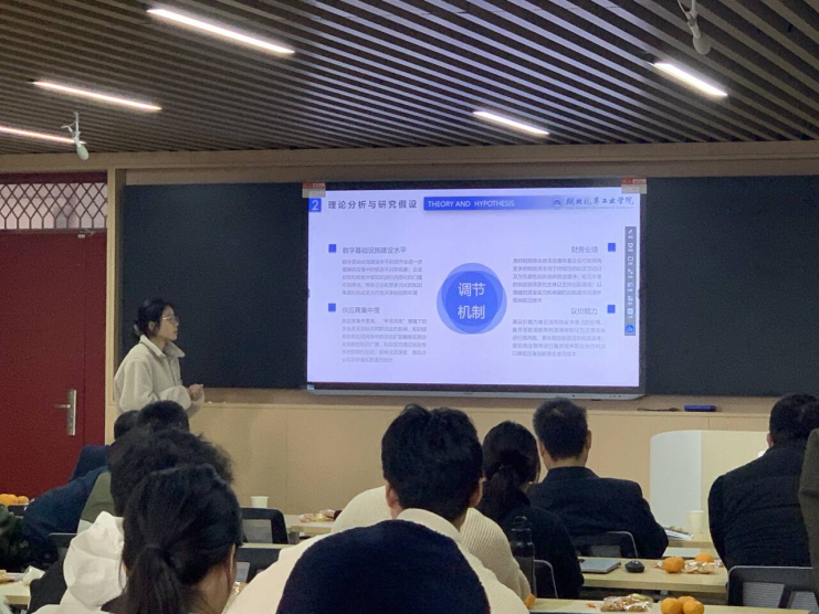 首先,艾新宇就《供应链数字化对企业创新的影响研究》进行了详细汇报。该研究以2011-2022年间中国A股上市公司数据为样本,运用了基准回归分析、机制分析、异质性分析以及稳健性检验,得出供应链数字化显著促进企业创新的结论。该成果深入探讨了数字化转型如何在提升企业创新能力方面发挥积极作用,特别是在供应链管理中通过数字化手段优化流程与提高效率,从而推动了企业创新的全面升级。
