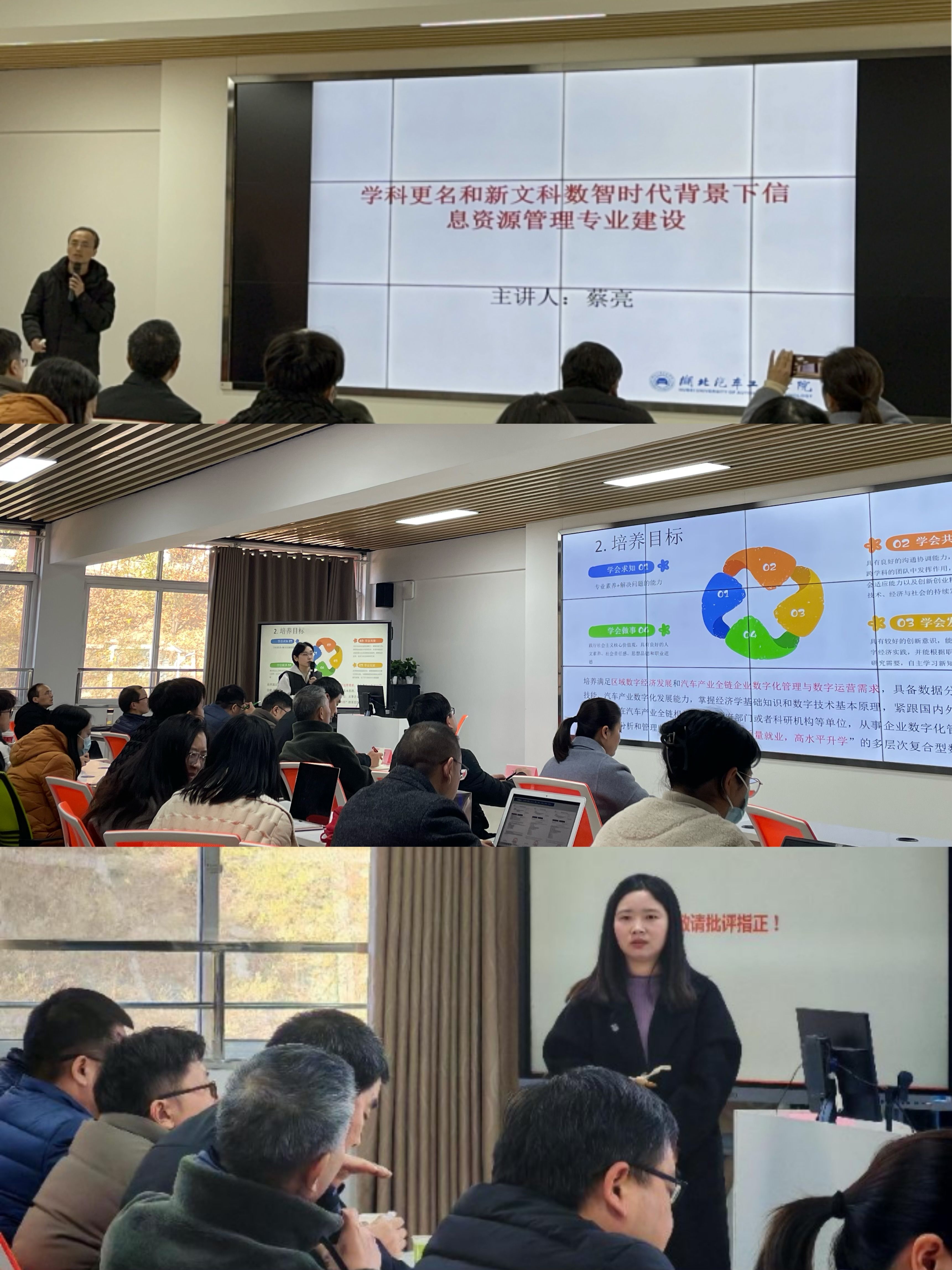 在第二期“专业负责人说专业”活动中,信息资源管理专业负责人蔡亮副教授、数字经济专业负责人王梦真博士、旅游管理专业负责人王慧婷博士依次上台发言,各专业负责人围绕专业基础、人才培养目标、教育理念、建设实践、团队力量、课程设置、建设成效、实验室发展及员工就业等多个角度,梳理阐述了各自专业在建设过程中取得的成绩、积累的经验、面临的挑战以及存在的不足