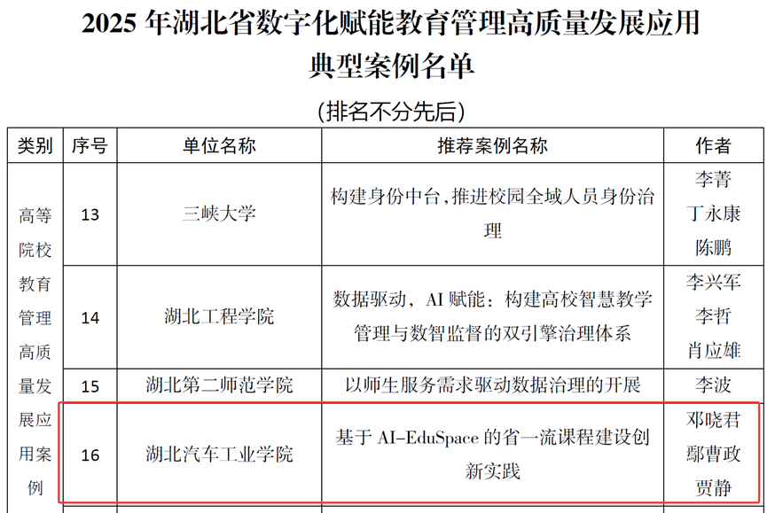近日,湖北省教育信息化发展中心公布2025年湖北省数字化赋能教育管理高质量发展应用典型案例名单,公司TapTap报送的“基于AI-EduSpace的省一流课程建设创新实践”成功入选。本次评选全省共43个项目入选,公司案例位列其中,凸显在数字化教育领域的扎实积累与创新实力。