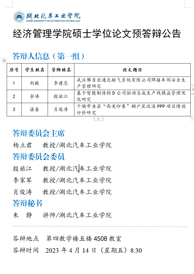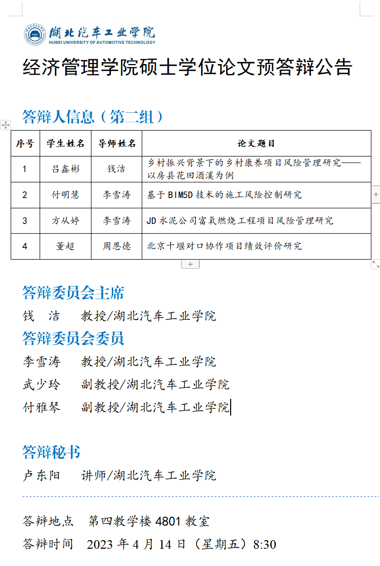 2023上半年经管公司硕士学位论文预答辩公告(一)