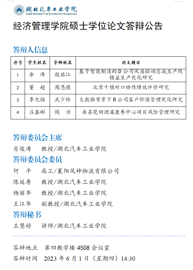 2023年上半年经济管理公司硕士学位论文答辩公告(二)