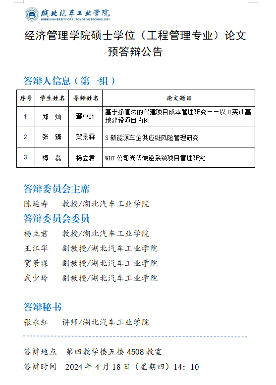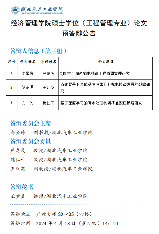 经济管理公司2024年上半年硕士学位论文预答辩公告(二)
