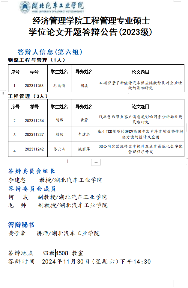 2023级工程管理硕士学位论文开题答辩公告(三)