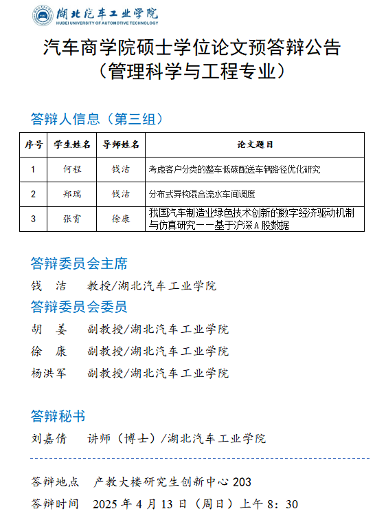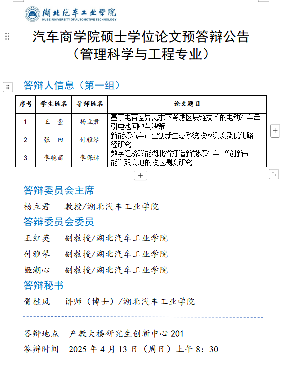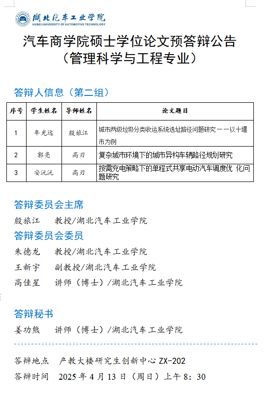 2025年上半年硕士学位论文预答辩公告(管理科学与工程专业)