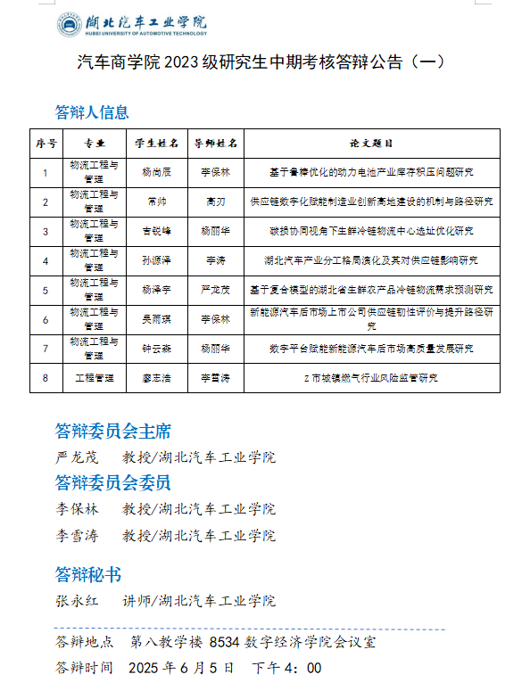 2023级管理科学与工程专业留学研究生中期考核答辩公告