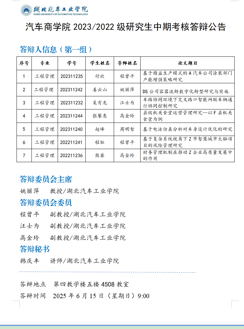 2023级研究生中期考核答辩公告(八)