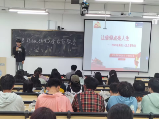 在教育活动中,党员骨干向新生介绍了党的历史、性质和宗旨,并以经济管理公司员工党支部为例,详细从提交入党申请书、积极分子成长、发展对象考核、预备党员考察和预备党员转正等党员发展的五阶段,介绍了入党的基本流程和内容,进而强调“组织入党一生一次、思想入党一生一世”。希望同学们能够充分认识中国共产党、热爱中国共产党,严格要求自己,不断提升政治素养,端正入党动机,坚定信念、接受党组织的培养教育及考察,争取早日成为合格党员。