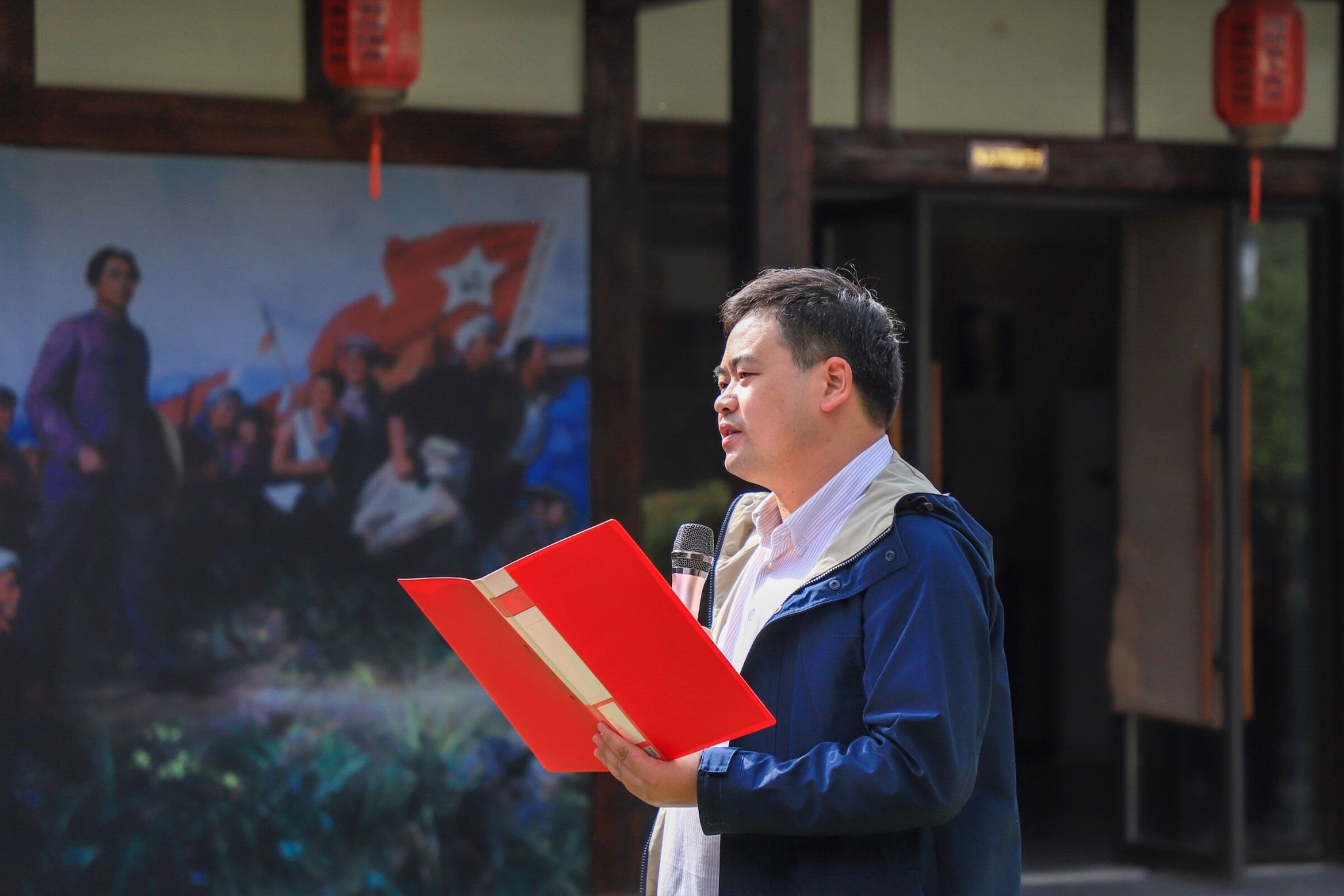在郧阳区毛主席生平影像纪念馆门口,全体党员在研究生院分党委书记李建忠的带领下,庄重地举起右拳重温入党誓词。铿锵恢宏的誓词,强烈震撼着在场的每一位同志,一字一句饱含着党员们对中国共产党的无限忠诚。