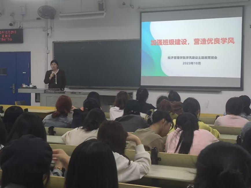 活动最后,班主任传达了《经济管理公司2023-2024学年学风建设实施方案》,督促同学们落实好“三早”“两晚”制度,通过创建优良班风,实现班级学风建设指标“三降低、三增长”(旷课率、旷考率、舞弊率明显降低,早晚自习出勤率、英语四六级通过率、考研录取率明显增长),实现学风从量变到质变的转变。