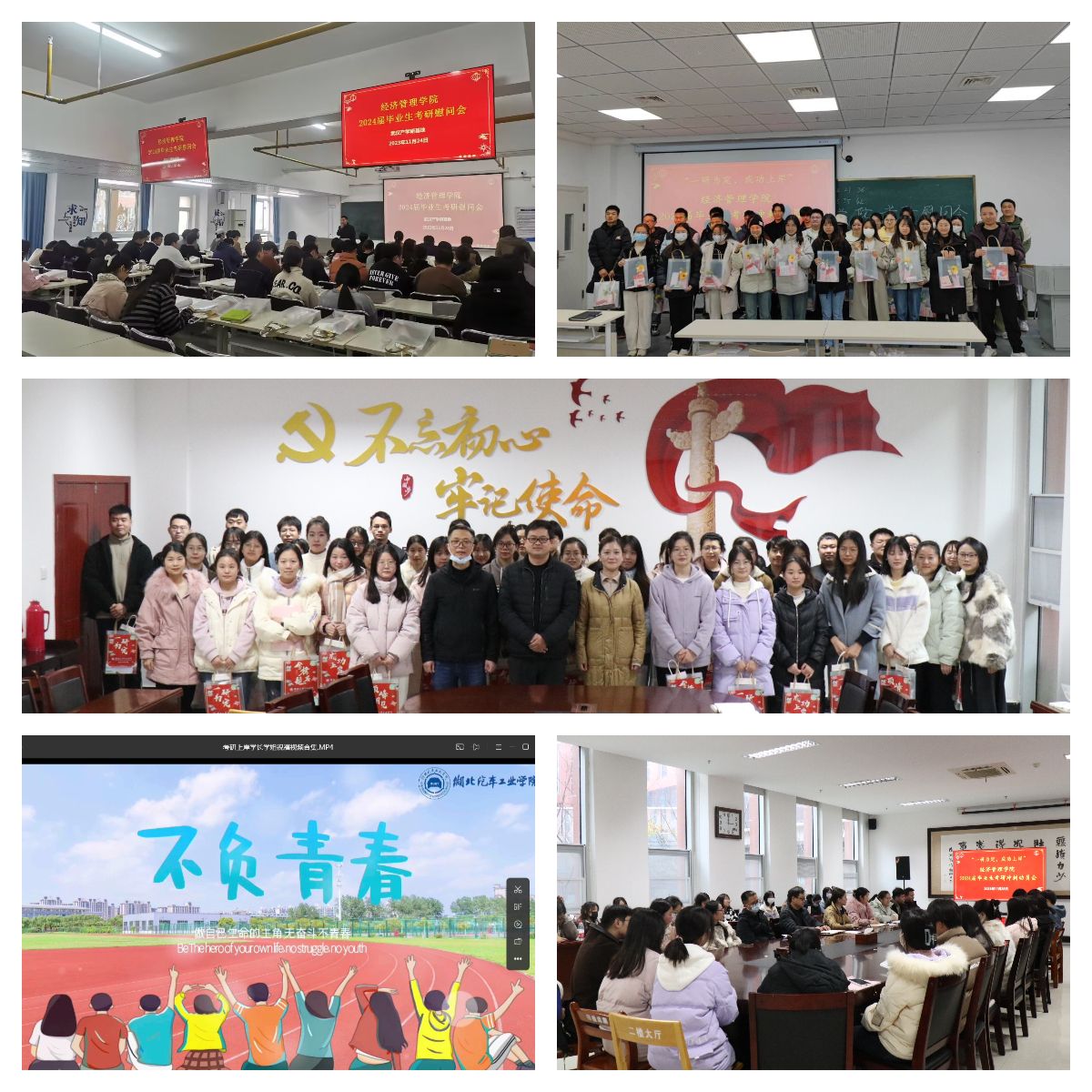 助力考研路,情暖学子心。2024年全国硕士研究生考试在即,为鼓励经济管理公司学子积极迎考,公司相关领导和老师在武汉产学研基地、襄阳产学研基地、校本部,开展了“一研为定,成功上岸”考研慰问活动。
