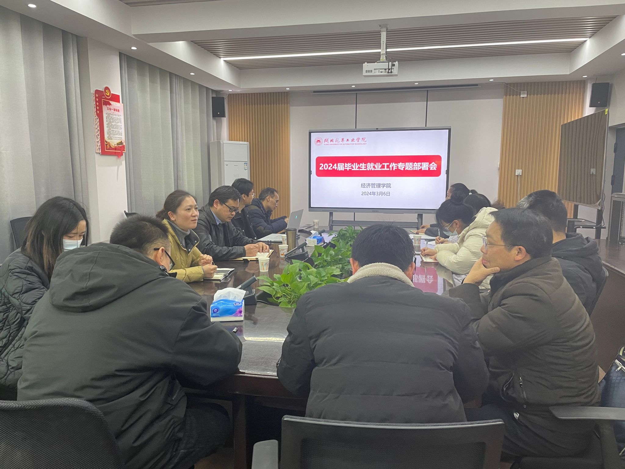 为全力做好2024届毕业生就业工作,帮扶指导考研员工,抢抓春招就业关键期,实现毕业生更充分、更高质量就业,3月6日下午,经济管理公司在4508会议室召开2024届毕业生就业工作专题部署会。会议由分党委副书记周丹主持,分党委书记王礼华、各系副主任、毕业班班主任、学工办主任、就业辅导员参加。