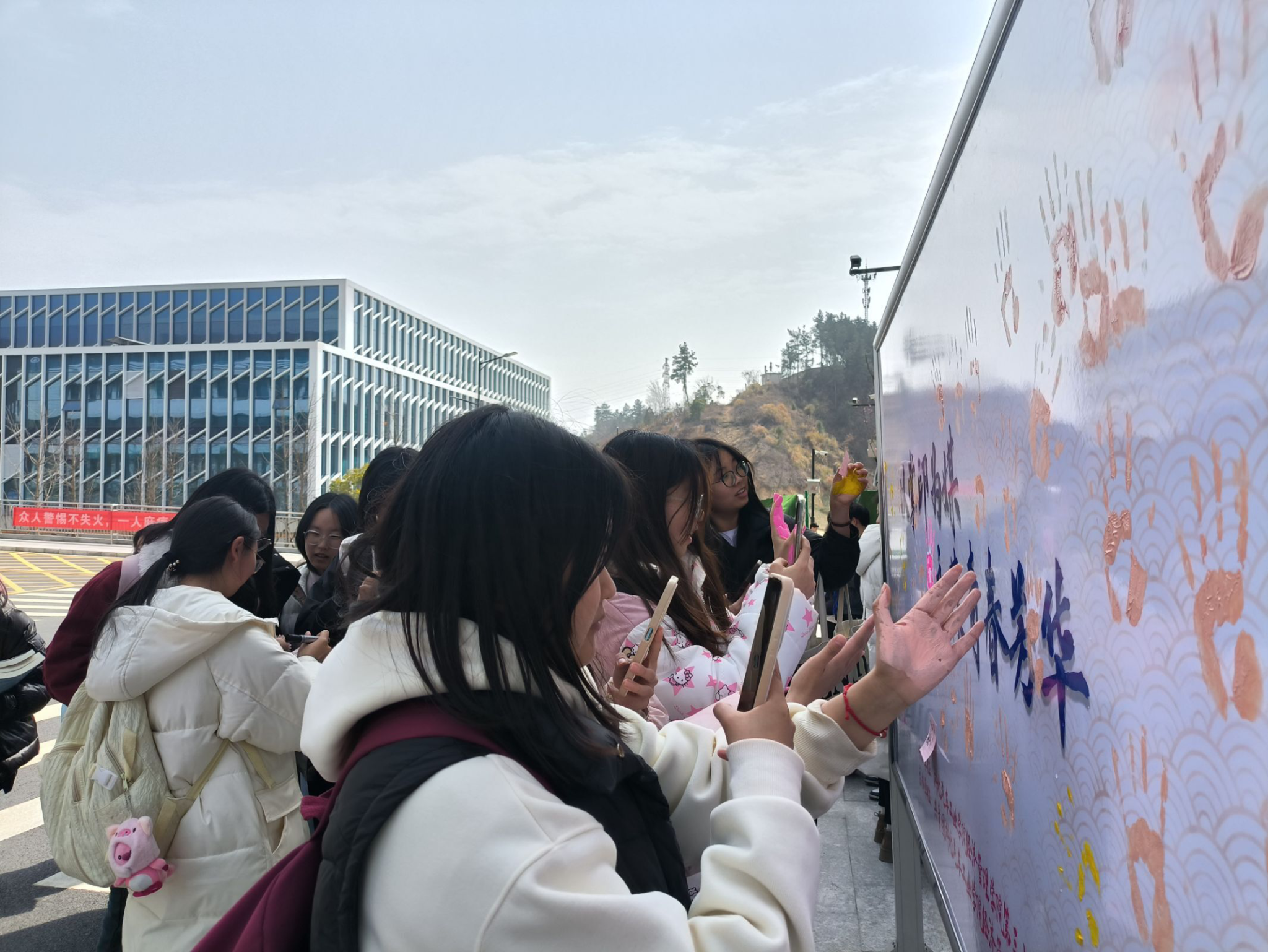 为庆祝3月8日国际妇女节的到来,提高对女性的关注,经济管理公司于2024年3月7日中午在北区八教教学楼前举办了“以掌印为媒,永葆青春芳华”女生节活动。公司各年级女生参与了本次活动。