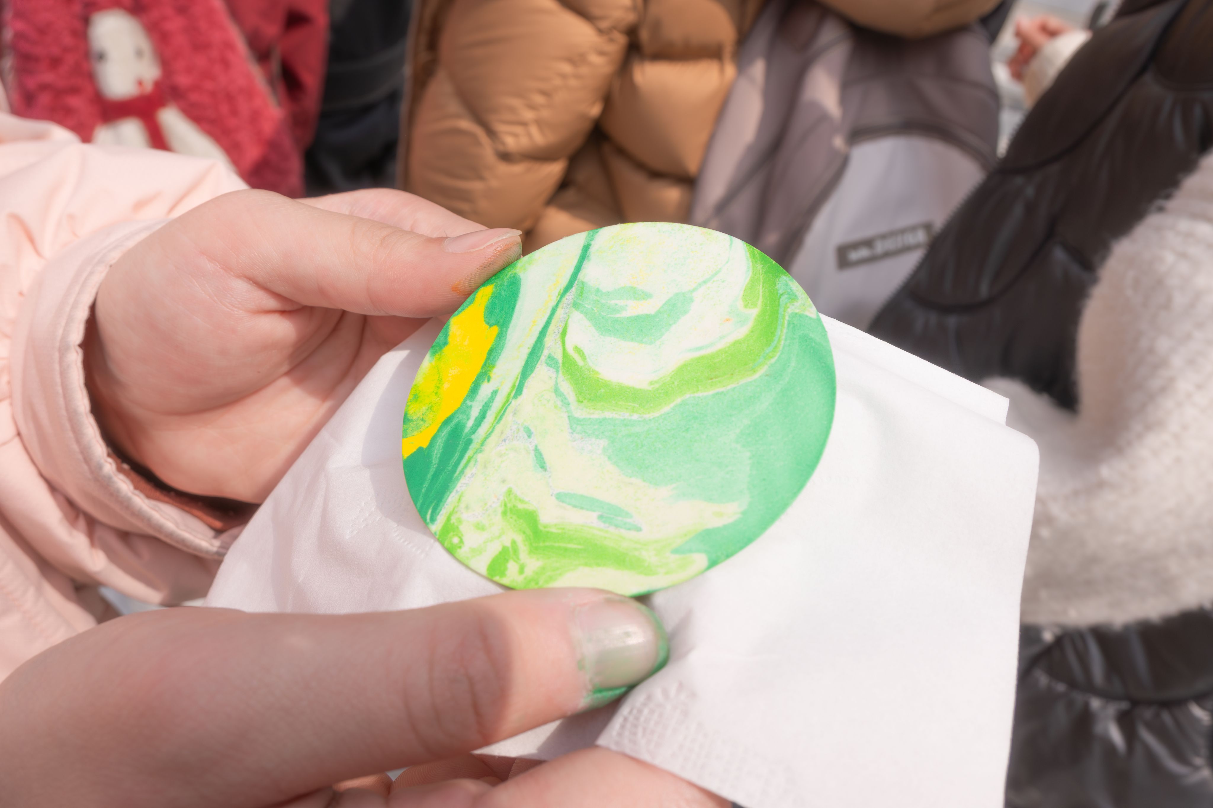 3月7日,梅园公寓化作传统艺术的创意天地。“国风手作体验”活动现场,书签、贴纸、颜料等材料一应俱全。参与者手持书签,在志愿者们的指导下,将彩漆滴入水中,以点、甩、弹、划等手法在水面绘出独一无二的纹样,轻摇扇柄,水的波纹与多彩的脉络攀上扇面,一幅幅精美的漆扇作品跃然呈现。将非遗传承与美育教育深度融合,通过低门槛、高互动的手工体验,让传统技艺走进TapTap学子的日常生活,为春日校园增添了一道亮丽的文化风景线。