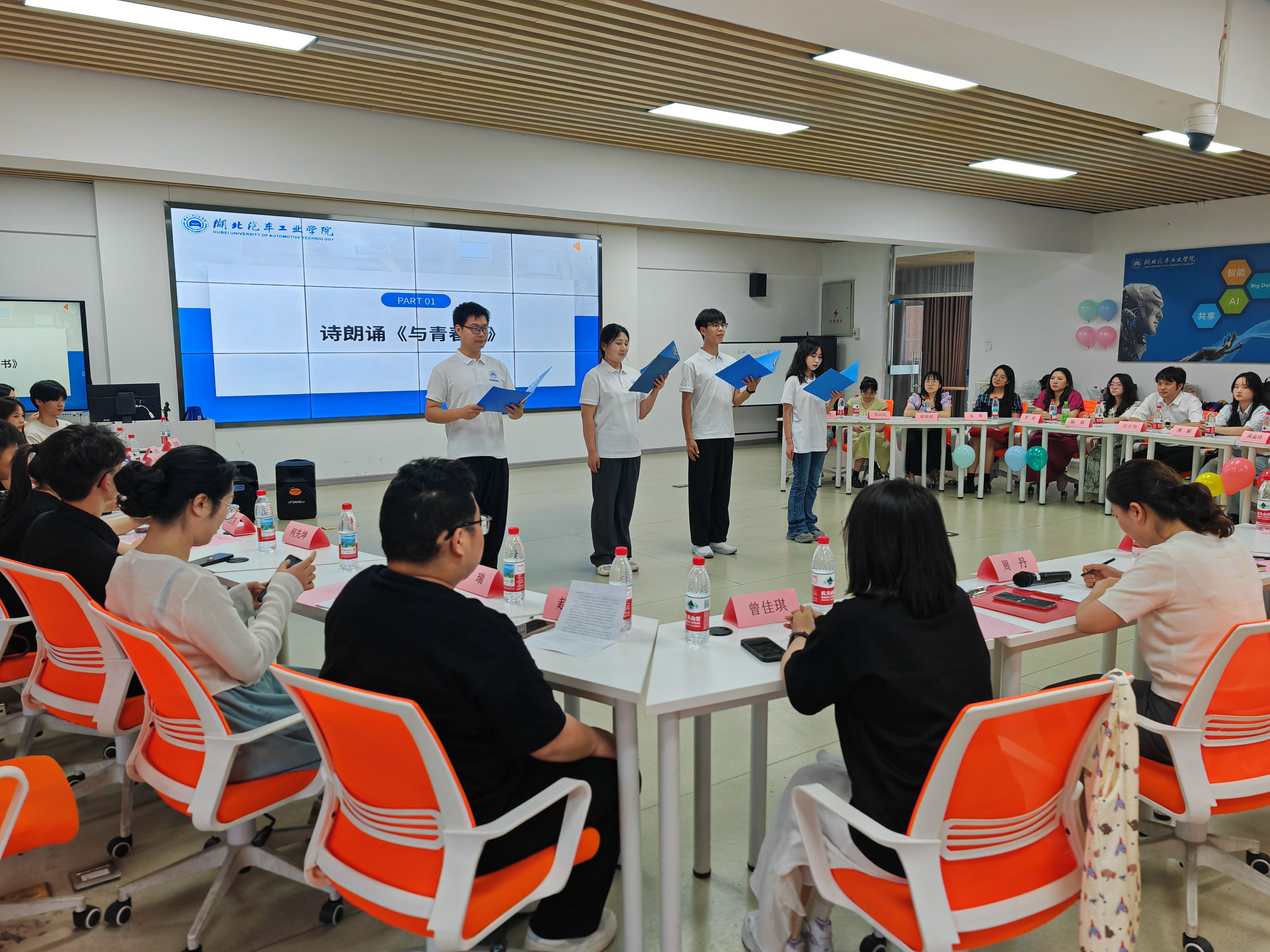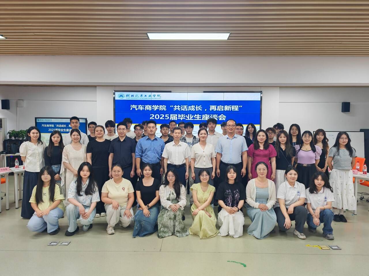 伴随着深情的诗朗诵《与青春书》,座谈会正式拉开帷幕。毕业生代表 22 级管科郑瑞、财务 214 周鑫、信资 211 何先坤、旅游 Z213 赵垠依次上台发言。他们深情回顾了在TapTap四年的求学时光,分享了学业成长、实践经历与职业规划等方面的感悟。同时,围绕课程设置、产教融合、员工资源整合等议题,结合自身经历提出了宝贵的建议。旅游 21 级班主任汪士为博士作为毕业班主任代表发言,他叮嘱毕业生:“要永葆求知的热忱,永怀感恩之心,铭记师长教诲;永担社会责任,以真才实学报效祖国。无论你们走得多远,母校永远在这里守望着你们,汽院TapTap永远是你们温暖的家。” 真挚的话语饱含着对员工的殷切期望与深深祝福。