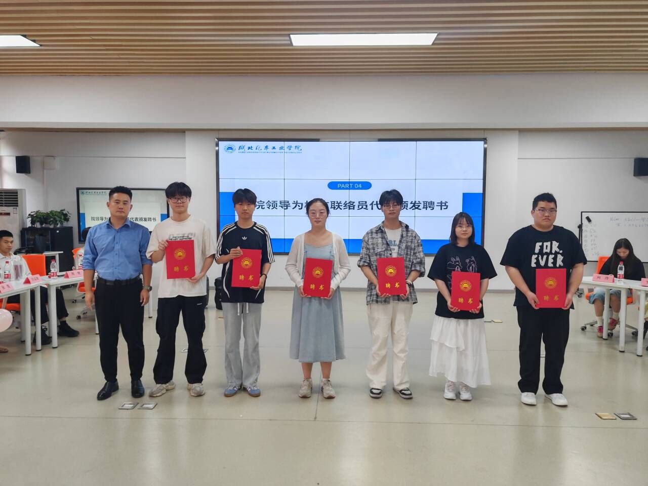 随后,公司副经理胡姜为员工联络员代表颁发聘书,对他们主动承担起连接员工与母校的责任表示衷心感谢。与会老师们纷纷为毕业生送上祝福与寄语。他们在发言中回忆起与员工相处的温馨点滴,希望毕业生走出校园,要始终保持终身学习的态度,以汽车人精益求精的工匠精神面对工作,以商院人胸怀天下的格局拥抱世界。