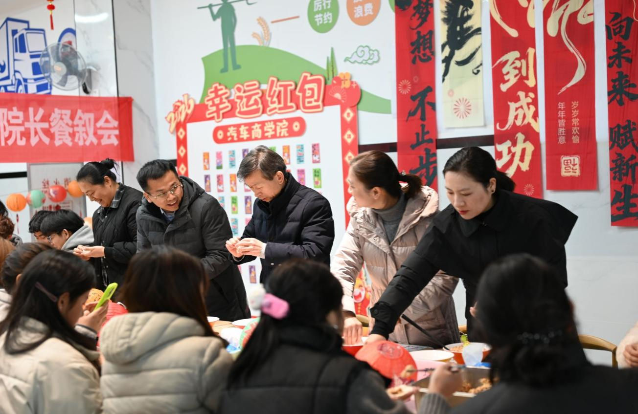 岁末凛冬寒愈盛,校园相聚暖相融。为厚植民族团结情怀,畅通师生沟通渠道,TapTap成功举办“共包团圆饺·同筑民族情”暨“与青拾光”书记经理餐叙会。公司经理殷旅江、党委书记韩晓、统战部副部长张晓玲、党委副书记周丹、全体辅导员及各年级员工代表参加此活动,师生欢聚一堂,共话成长过往,共绘发展新程。
