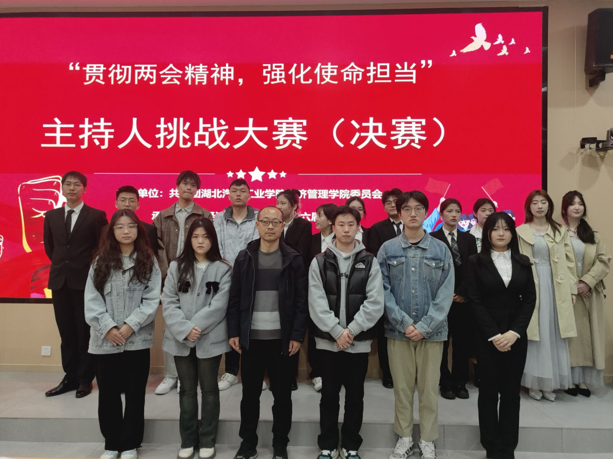 为促进校园文化发展,激励青年人砥砺前行,经济管理公司于2024年3月24日上午10:30在8106教室举办了“贯彻两会精神,强化使命担当”为主题的校园主持人挑战大赛。经济管理公司分团委书记吴文斌和150余名管院学子参与本次比赛。