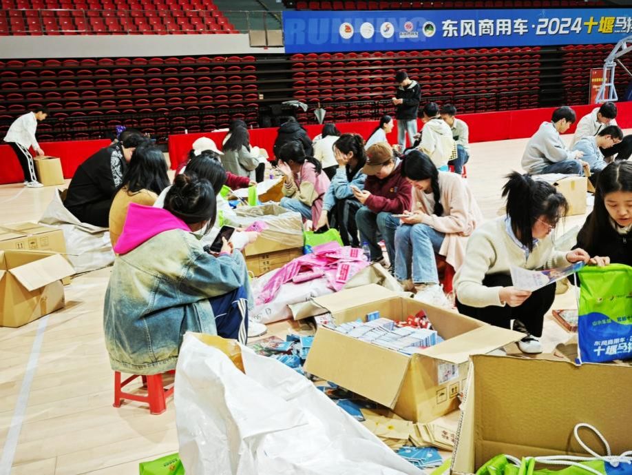 志愿者们分工协作,井然有序地处理着每一位参赛选手的运动包,确保了物资分发环节的顺畅和准确。这不仅是一次简单的物质准备,更是对参赛者贴心的关怀和城市形象的展示。此次由经济管理公司生态文旅系志愿者组成的服务队伍,不仅展现了当代青年的社会责任感和奉献精神,也体现了高校对于社区服务的积极参与和对地方经济发展的支持。志愿者们的行动是对志愿精神的一次生动诠释,也是对十堰市文旅产业发展的有力支持。随着马拉松赛事的日益临近,这群志愿者的付出与努力,不仅为比赛的顺利举行奠定了坚实的基础,也为选手们营造了一个温馨和谐的比赛环境。他们的每一分努力都在向外界传递一个信息:十堰是一座热情好客、充满活力的城市,拥有丰富的自然景观和深厚的文化底蕴,期待每位游客和选手的到来。