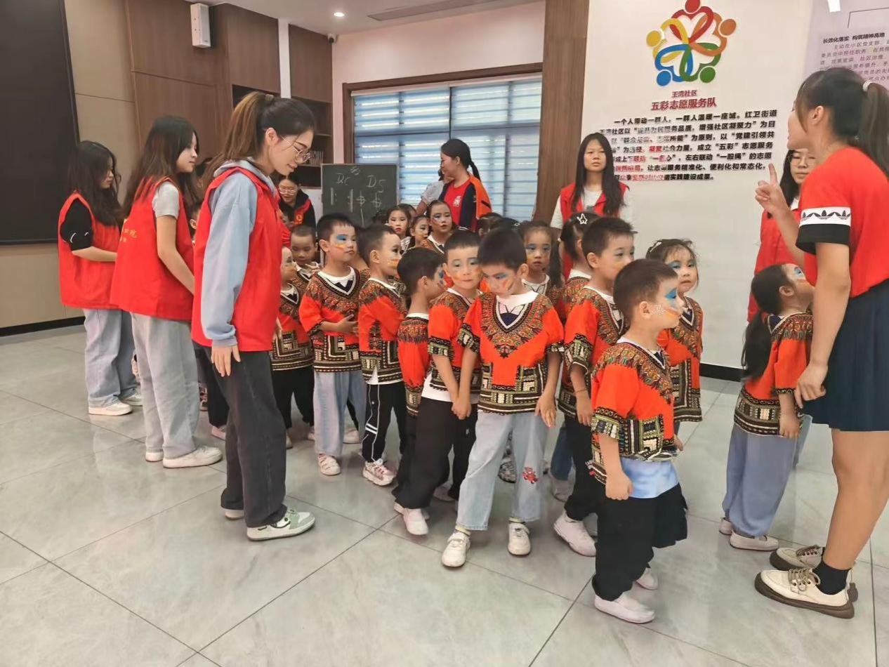 活动伊始,志愿者帮助王湾社区工作人员布置活动场地,大家分工明确,现场工作开展得井井有条。与此同时,志愿者们帮助带领表演节目的小朋友在后台预热,并做好事前准备工作。活动过程中,志愿者们在欣赏社区精彩节目的同时,也不忘积极地帮助现场收拾搬运舞台道具,使得表演顺利进行。现场喜迎国庆的氛围浓厚,志愿者们乐在其中,丝毫不吝啬自己的掌声,给予舞台表演者最诚挚的鼓舞和感谢。