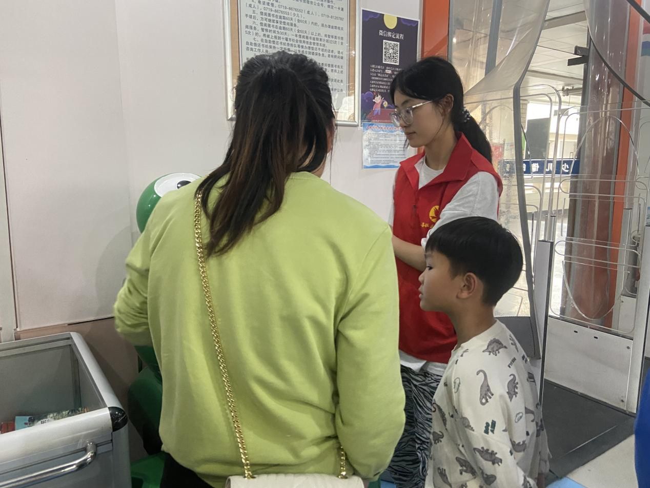 活动现场,志愿者们分工明确、协作默契,高效推进各项服务工作。在借阅区,他们耐心指导读者使用自助设备,为小朋友们细致讲解借阅流程,确保每位小朋友都能顺利借到心仪的书籍;在阅览区,他们仔细整理书架,将散落的图书分类归位,同时,他们还对破损图书进行精心修补,确保每本书都能完好地传递给下一位读者。经过数小时的辛勤付出,图书馆的阅读环境焕然一新,变得更加整洁、舒适。