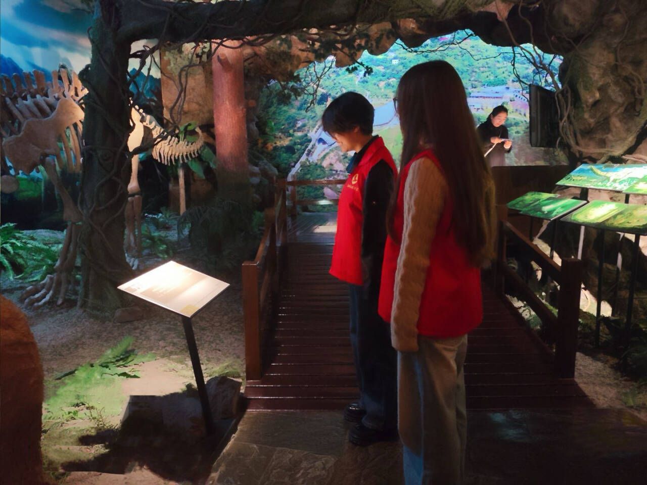 本次志愿服务覆盖博物馆 “车与十堰”、“恐龙时代”、“南水北调出土文物” 等多个核心展区,志愿者们结合不同展区特色,量身定制服务内容,让每一次引导都充满针对性与专业性。在 “车与十堰” 展馆,志愿者们充分发挥商公司专业优势,围绕十堰汽车产业的发展脉络、商业模式创新等内容,用通俗生动的语言为游客讲述十堰与汽车的深厚渊源;走进充满童趣的恐龙展区,志愿者们化身 “科普小老师”,以童趣语言耐心解答孩子们对恐龙的奇思妙想;在“南水北调出土文物”展厅,他们深情讲述文物背后的移民故事,传递坚韧奉献的精神力量。此外,志愿者们还根据游客需求贴心规划参观路线,使每一段文博之旅都更加充实而有温度。