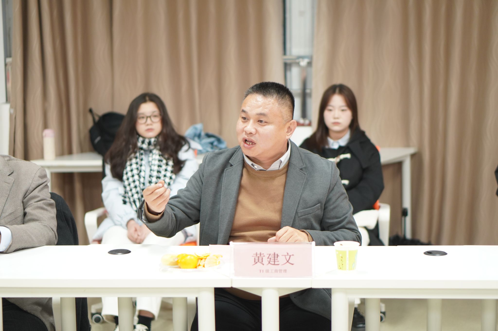 座谈会上,与会员工与母校的领导老师展开了积极交流。员工们畅所欲言,结合自身的实际经验,围绕硕士点建设、教学科研、实习实践、课程设置、交流合作等问题进行探讨,提出了建设性思路,并衷心地祝愿母校发展越来越好。黄建文员工以“创新创业”为主题,结合自己多年的奋斗历程与创业经历,向同学们分享经验。他鼓励同学们在本科期间,树立自己的目标并为之付诸行动,养成良好的学习习惯,同时也要积极“走出去”,增长见识,为未来职业发展储能蓄力。老师代表杨立君教授追忆当年教师生涯,并从人生规划、阶段安排等方面给同学们提出建议,他鼓励同学们结合自身性格、兴趣、社会环境等来制定人生计划,提高自己的沟通能力、写作能力和社会实践能力。