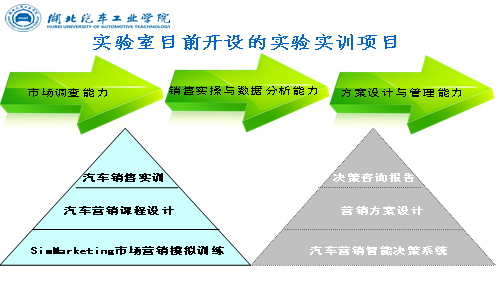 汽车营销实验室面积为200余平米,拥有计算机、汽车模型、汽车数据、CRM软件等完善的软硬件设施。实验室设有销售接待、配件供应、售后服务、保险理赔、精品展示、方案设计等六大功能区。是集汽车销售、售后服务、客户管理、汽车定损与查勘于一体的综合实验室。员工可在仿真的环境下进行导购、洽谈、售后服务等项目的训练。还可通过汽车市场需求预测、竞争情报挖掘、客户行为分析和汽车配送等功能模块的设计与整合,构建客户价值细分、潜在客户识别、客户数据分析和客户满意度分析的系统。《汽车营销》、《汽车零部件营销》、《汽车销售实务》、《二手贸易》、《汽车保险理赔》等多门课程的实训环节和员工的课外竞赛、创新创业训练等均在该实验室开展。具体见下图: