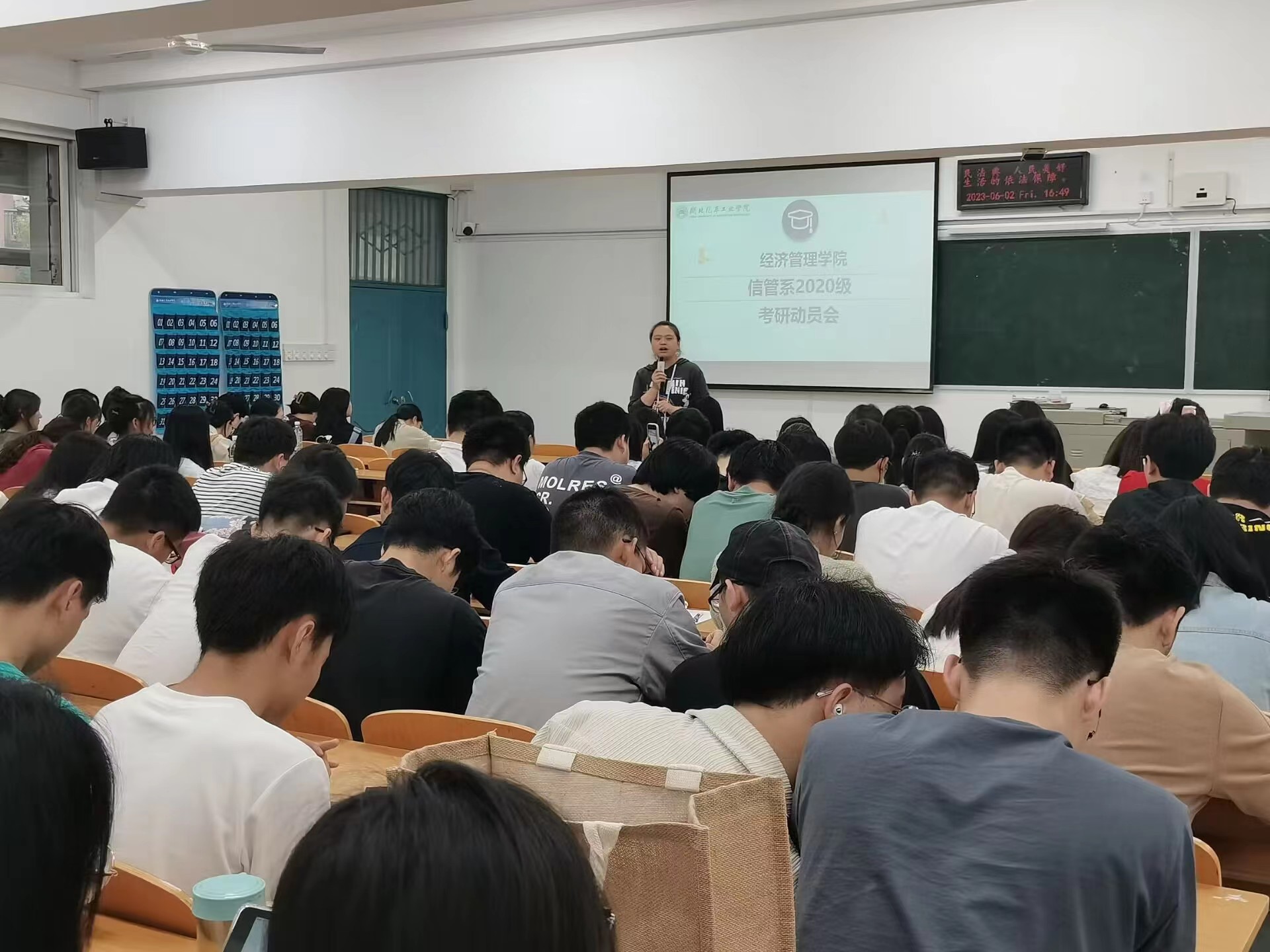 为进一步帮助员工做好老员工涯规划,引导员工正确认识当前升学和就业形势,激发员工的考研热情,帮助员工提升复习备考技巧,树立正确的择业观和就业观,6月2日下午,经济管理公司开展了信管系20级员工考研交流暨就业动员大会,信管系主任王红英、辅导员代将来、3位考研上岸的优秀学子和信息资源管理、信息管理与信息系统、大数据管理与应用三个专业的20级全体员工参加了本次大会。
