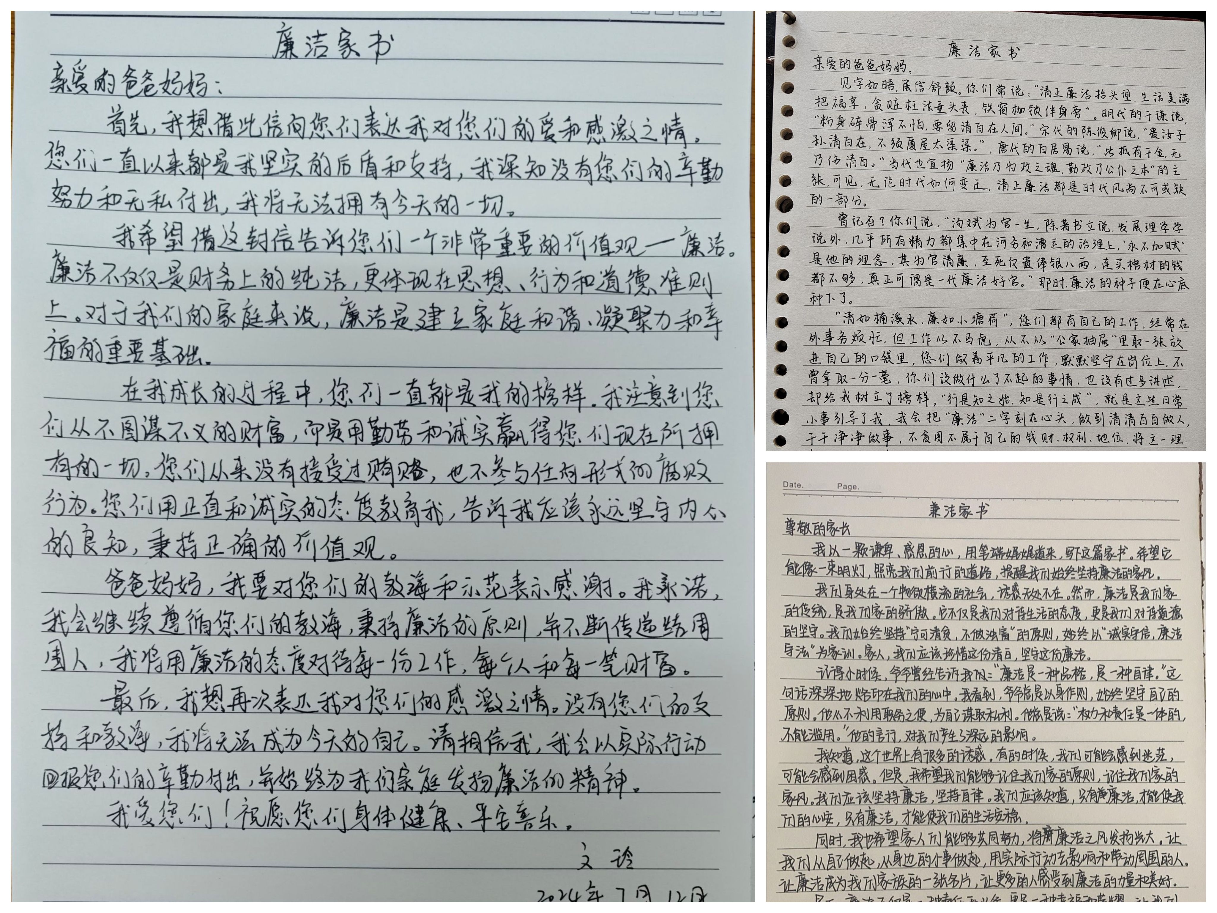 廉洁书信,共话清廉。员工党支部坚持贯通党纪学习教育与廉洁教育相结合,开展“廉洁”家书活动。员工党员结合党纪学习教育所思所悟撰写廉洁家书,用廉洁自律与家人共勉,以优良家风共建美好家园。
