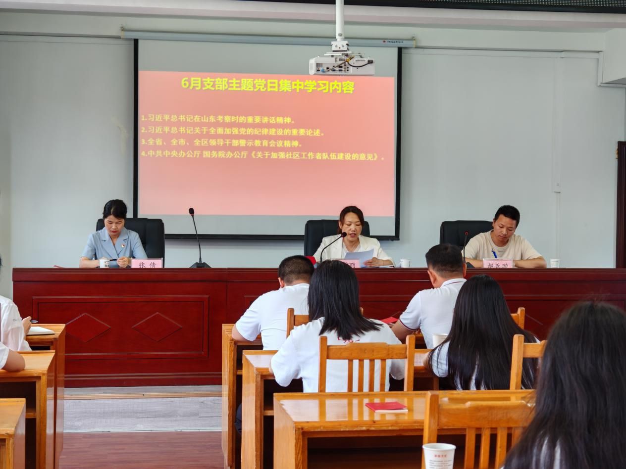 会上,全体党员佩戴党徽、颂唱国歌、重温入党誓词。赵氏璇同志带领大家共同学习《中国共产党章程》第五章,郝钦杨同志带领大家共同学习全省、全市、全区领导干部警示教育会议精神,汪安丽同志领学习近平总书记关于全面加强党的纪律建设的重要论述。
