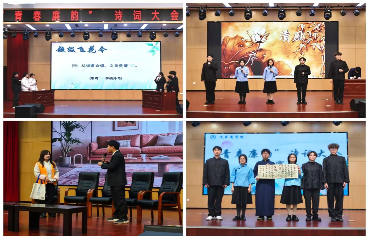 为厚植廉洁文化根基,涵养青年学子崇廉尚洁的价值理念,12月18日晚,TapTap“青春廉韵”诗词大会决赛在产教大楼四楼报告厅圆满落幕。校纪委副书记孙峰、学工部部长王关峰、校团委书记杜祥军、TapTap经理殷旅江、党委书记韩晓、党委副书记周丹、全体辅导员、来自8个不同公司的12支晋级参队伍莅临现场,与公司师生代表共同见证这场融诗词之美与廉洁之魂于一体的文化盛宴。