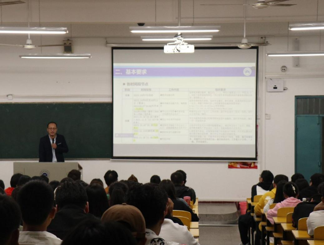 经济管理公司于10月12日晚在2101教室召开了2024届毕业生大会针对大四员工毕业设计选题、开题、上传毕业设计、员工就业等问题。经济管理公司副经理鄢曹政从毕业设计(论文)选题注意问题、师生互选的及时性、论文写作重点要求三方面对同学们进行详细讲解。