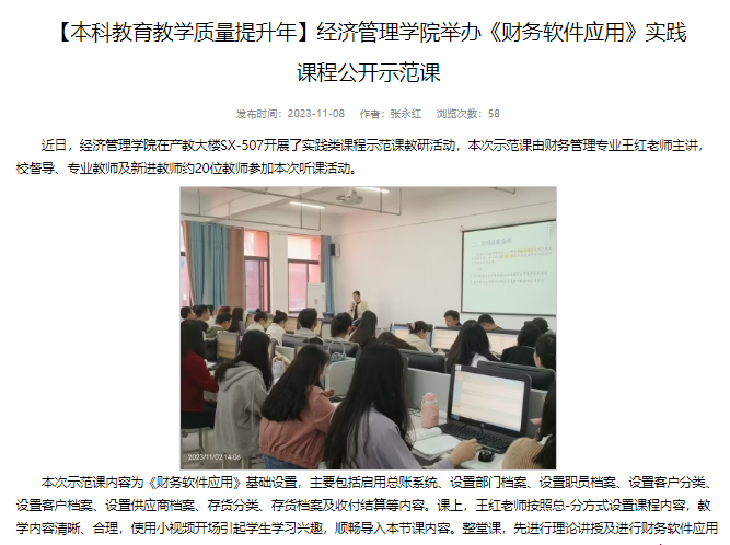 为了进一步加强教师队伍建设,提升青年教师课堂教学能力和专业水平,充分发挥专业骨干教师的示范引领作用,推动青年教师互促共进,经济管理公司组织开展了《组织行为学》和《财务软件应用》公开示范课学习,校督导、公司专业课教师及新进教师约20位教师参加本次听课活动。
