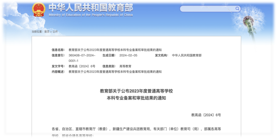 教育部下发《关于公布2023年度普通高等公司本科专业备案和审批结果的通知》(教高函〔2024〕6号)文件,公司申报的数字经济与质量管理工程专业成功获批。