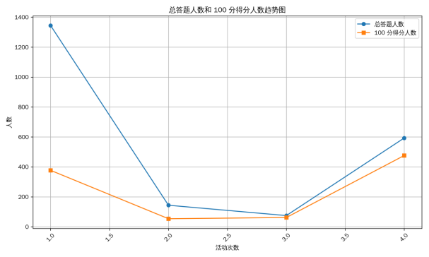 ◦ 第 1 期参与人数达峰值 1344 人,第 3 期降至最低 75 人,第 4 期回升至 593 人但仍低于首期。