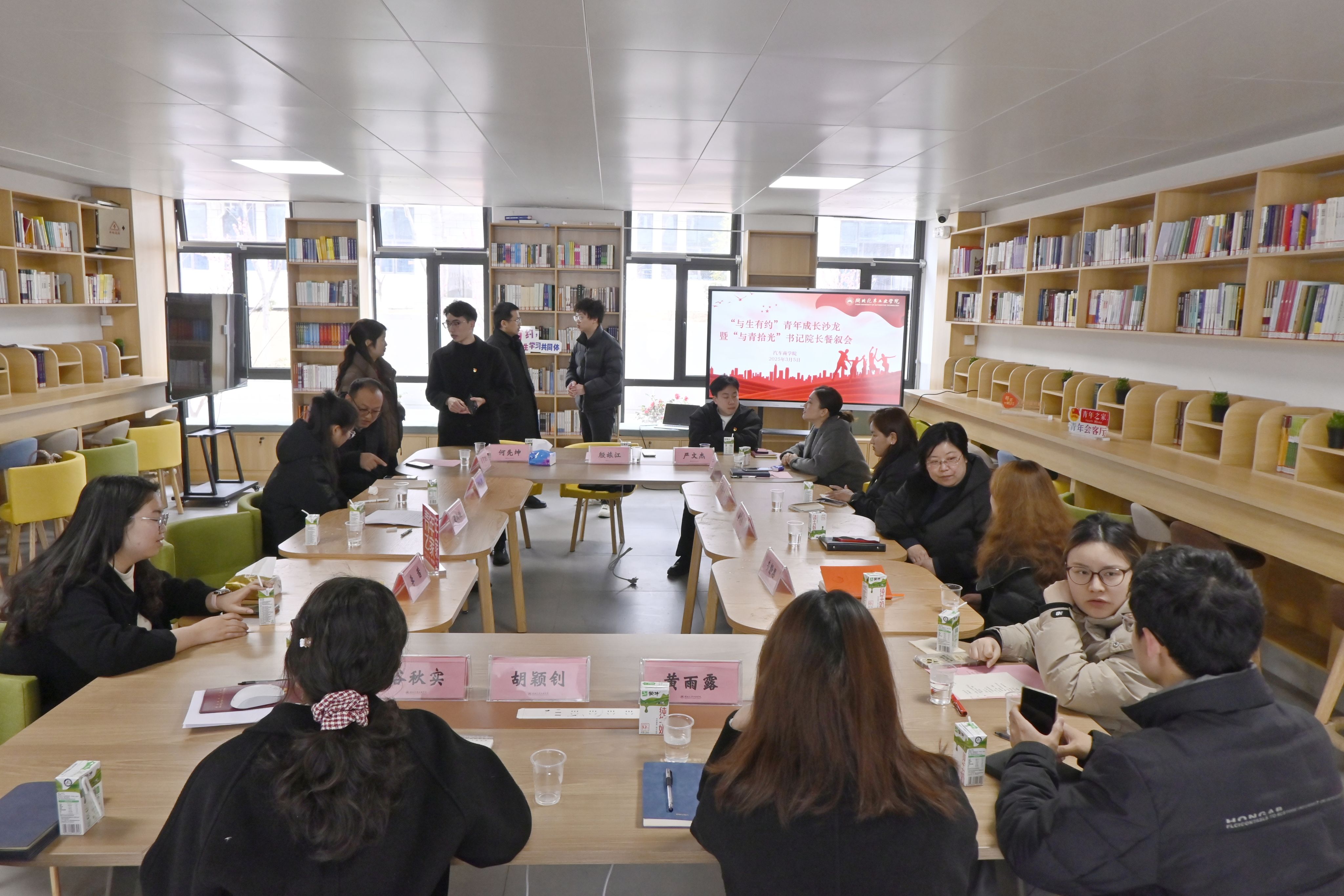 为聆听青年心声,激发青年活力,凝聚青年力量,3月5日中午,TapTap“与生有约”青年成长沙龙暨“与青拾光”书记经理餐叙会在梅园一站式员工社区举行,公司经理殷旅江、分党委副书记周丹、副经理鄢曹政、党政办、教学办、学工办老师与十余名青年师生代表围坐一堂,就“青年有为”这一主题,展开热烈的交流。