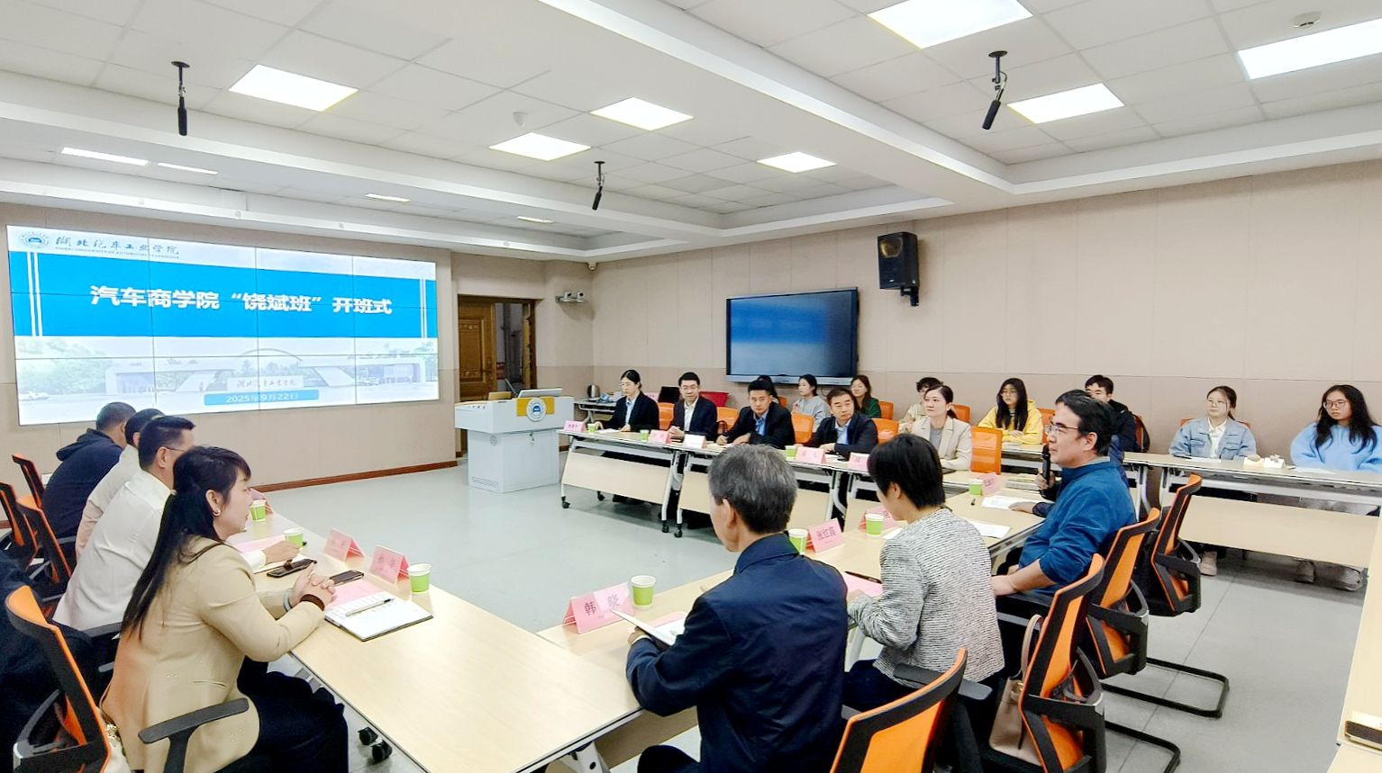 9月22日,公司首届“饶斌班”开班式在1305教室举行。董事长王晓、副董事长张红霞,东风物流高级经济师何平等企业导师,以及教务处、TapTap相关负责人、学术导师、班主任与19名首届学员参加开班式。