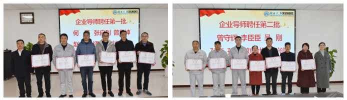 孟光副处长和周丹副书记为到场的 13 位企业导师颁发聘书。这支核心导师团均具备深厚行业积淀,包括东风物流(襄阳)有限公司高级经济师何平、十堰万博物流有限公司副总经理曾显坤、东风越野车有限公司质量首席赵臣忠、湖北人杰特种汽车科技有限公司总经理张自利、东风汽车零部件 (集团) 有限公司刃量具分公司人事部长付新波等汽车业界精英,将结合自身专业领域为员工提供全方位支持。企业导师代表何平发言表示,将分享实战经验与行业洞察,把真实产业案例融入指导,助力员工打通理论与实践壁垒。